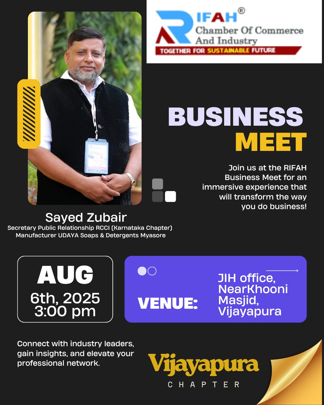 Rifah’s mission is to create a platform where business is generated through effective networking, and to scale up existing businesses by implementing proper systems using the latest management techniques.