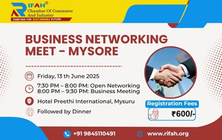| Description | Assalamu Alaikum, You're warmly invited to the upcoming RIFAH Chamber of Commerce and Industry (RCCI) – Mysore Sultans Chapter Business Networking Meet. Date: Friday, 13 th June 2025 This is a great opportunity to connect, collaborate, and grow with like-minded business professionals from our community. |