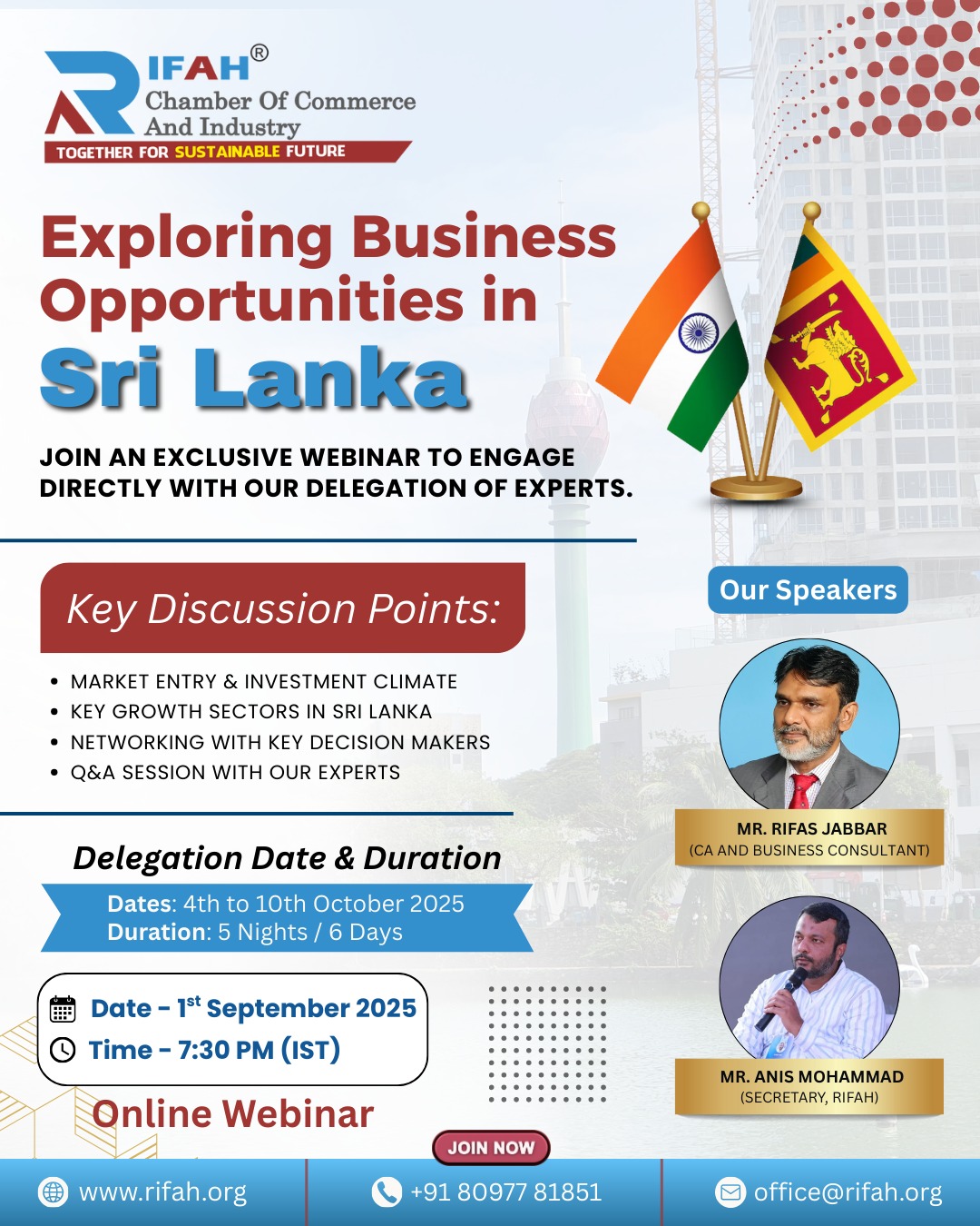 | Description | Exploring Business Opportunities in Sri Lanka Join an exclusive webinar to engage directly with our delegation of experts.