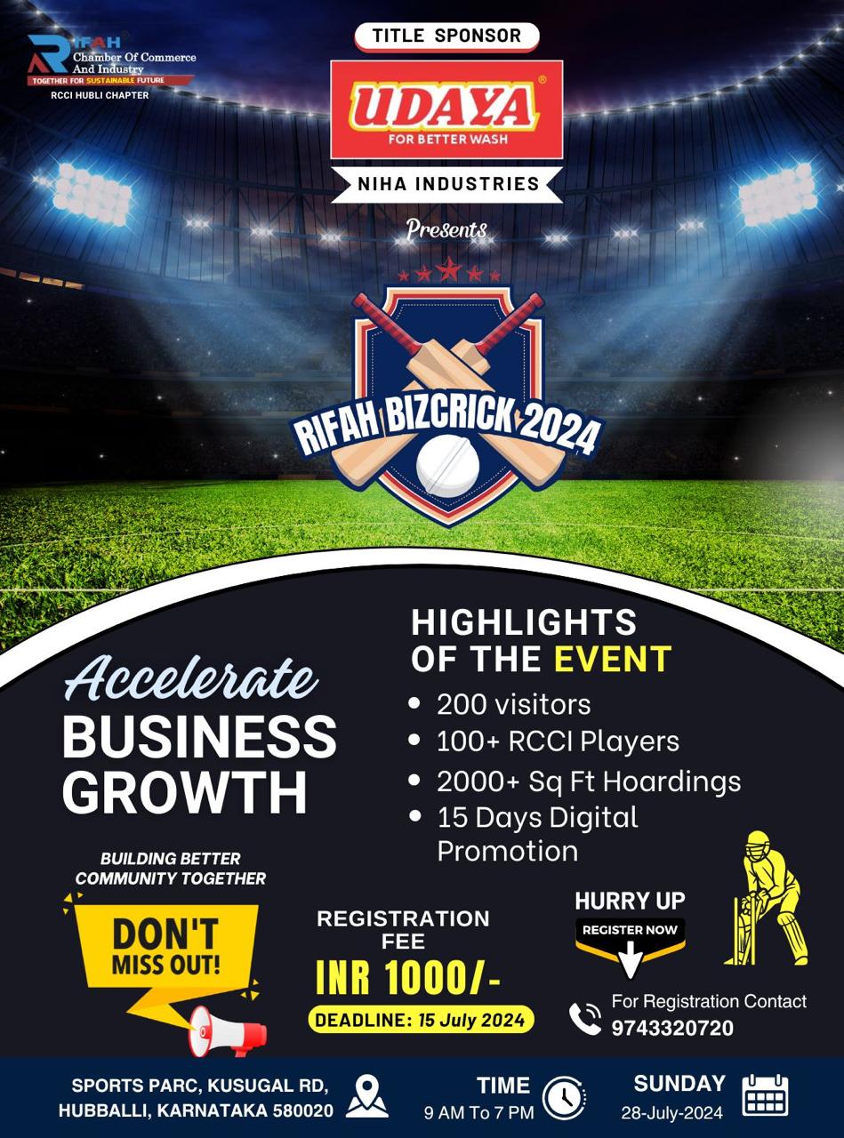| Description | Dear Rifah Members (India) Assalamulaikum We are thrilled and immensely proud to announce Rifah Bizcrick 2024 , hosted by Rifah Hubli chapter on 28/7/2024 . We cordially invite you and your team to join us on this special event Looking forward to your presence, #RifahBizcrick2024 #rifah #hubli #cricket #bizcrick |