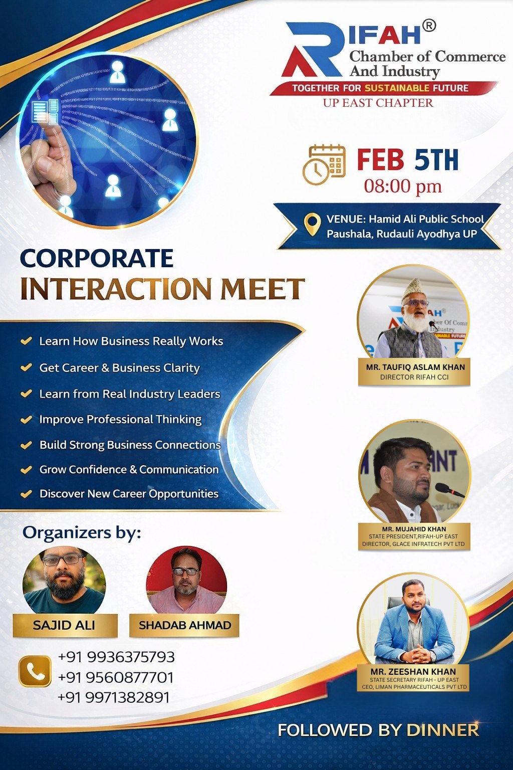 | Description | RIFAH Chamber of Commerce and Industry (UP East Chapter) is organizing a "Corporate Interaction Meet" to help you grow your business and career. Event Highlights: Details: |