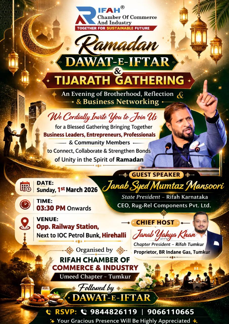 | Description | RAMADAN DAWAT-E-IFTAR & TIJARATH GATHERING π Assalamualaikum Warahmatullahi Wabarakatuhu, You are warmly invited to a blessed evening of Brotherhood, Reflection & Business Networking β a special Tijarath (Business) Meet followed by Dawat-e-Iftar. βββββββββββββββ π