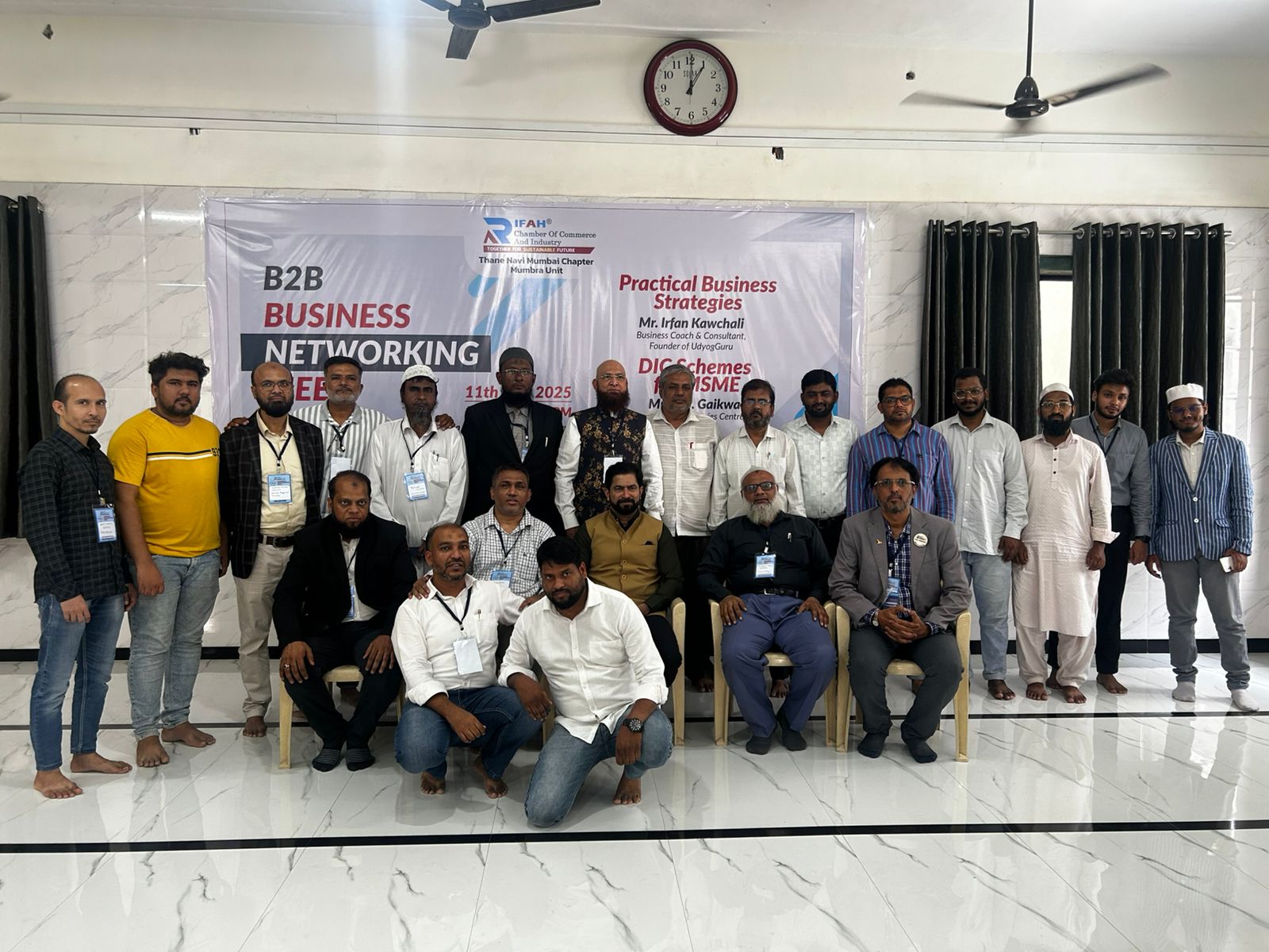 | Description | Rifah B2B Business Meet – Mumbra Successfully Concluded Rifah Chamber of Commerce's Thane-Navi Mumbai unit successfully hosted the Rifah B2B Business Meet in Mumbra on 11th May 2025, with the enthusiastic participation of 30+ business owners and professionals. The event served as a dynamic platform for B2B networking, knowledge sharing, and entrepreneurial development. Event Highlights: The first session, titled "DIC Schemes for MSMEs", was conducted by Mr. Rathod Dnyaneshwar, Industry Inspector – DIC Thane. He elaborated in detail on various Central and State Government schemes aimed at empowering MSMEs. Mr. Rathod guided attendees on how startups and existing businesses can avail benefits like subsidies, funding, and business expansion support through DIC. A meaningful Q&A session followed, during which participants posed relevant queries. Mr. Rathod addressed each question with clarity and assurance, adding great value to the session. Subsequently, all participants introduced themselves, with each person given 2 minutes to share their business background and interests, enhancing visibility and potential collaborations. The event's highlight was a powerful session by Mr. Irfan Kawchali (UdyogGuru) on “Practical Business Strategies & Smart Networking.” He pointed out common mistakes entrepreneurs make in networking, such as seeking leads without offering value, and emphasized that real networking is about giving first. He said, “Lead generation ka kaam maangne ka nahi, dene ka hai. Jab aap dusron ki help karte ho, Allah aapki madad logon se karwata hai.” He also explained how to build practical, result-oriented business strategies that align with real market demands. Following this was a Networking Lunch and Namaz Break, which allowed participants to connect informally over meals and build deeper relationships. The event concluded with an open discussion and Q&A roundtable, where attendees engaged with Mr. Kawchali one-on-one. His insightful answers satisfied and motivated participants to implement the learning in their business journey. The business meeting concluded successfully at 3 PM, marking a day full of learning, networking, and growth. Organized by: |