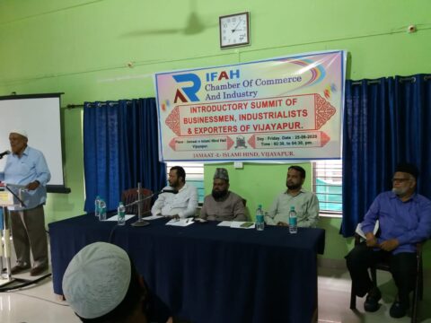 Rifah Chamber of Commerce and Industry Karnataka Chapter organized Business Summits in 7 districts. In Vijaypur, 70 businessmen participated in the summit on 25-09-2020 at 2:30 p.m. Program started with Tilawate Quran followed by inaugaral words by Mr. Rafeeq Ahmed Secretary of shob e ummat ka tahaffuz aur taraqqi. Mr. Mohammed Anis incharge of Startup Business Department of RCCI was the guest speaker, he spoke on the challenges and opportunities of business community in pre and post COVID-19. Mr. Mirza Afzal Baig Gen. Secretary of Rifah Chamber of Commerce and Industry who was the cheif guest of the program gave intro of RCCI to the audience and how it is becoming an umbrella for business guidance and networing for businessmen. Program concluded by Mr. Yusuf Kunni (Vice President JIH Karnataka).